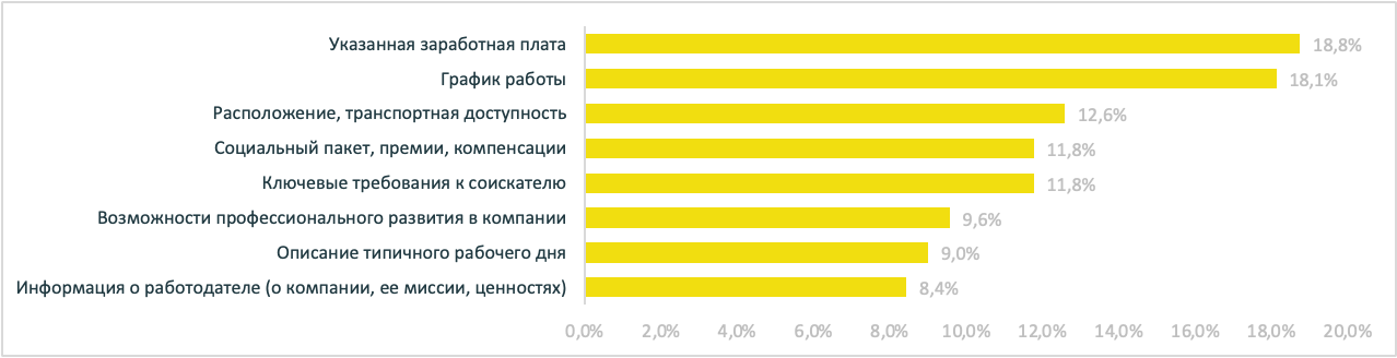 Наше исследование показало, что наиболее значимые аспекты, которые привлекают внимание соискателей (рис. 1):